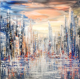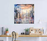 Sides of the canvas are painted grey, allowing it to hung with or without frame.