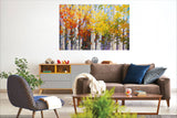 The autumn landscape, adorned in a rich tapestry of colors, is a visual symphony that stirs the soul. In this picturesque scene, yellow, orange, red, rust, and gold intermingle, creating a breathtaking display against the backdrop of a dark grey sky.