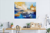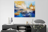 Sides of the canvas are painted grey, allowing it to hung with or without frame.