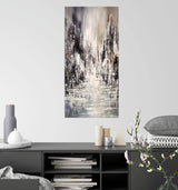 Sides of the canvas are painted grey, allowing it to hung with or without frame.