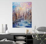 Sides of the canvas are painted grey, allowing it to hung with or without frame.