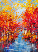 The forest breathed in shades of gold and crimson, and the river carried their reflection like a letter to winter.