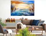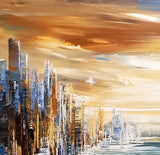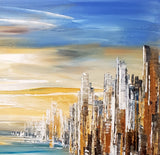 Sides of the canvas are painted grey, allowing it to hung with or without frame.
