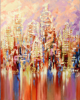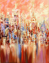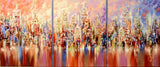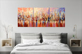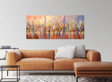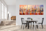 Size: 3 panels of mounted canvas, each 22" x 28" x 1" inches, for a total size of 28" x 66" / 71.1 x 167.6cmMedium: acrylic